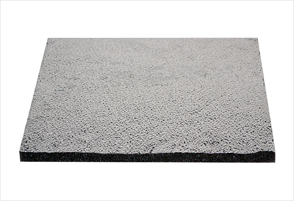| Aspetto | sandwich composto da: - TESSUTO IN FIBRA DI VETRO nero 200 g/m² - POLIURETANO antracite 25 kg/m³ - adesivo |
